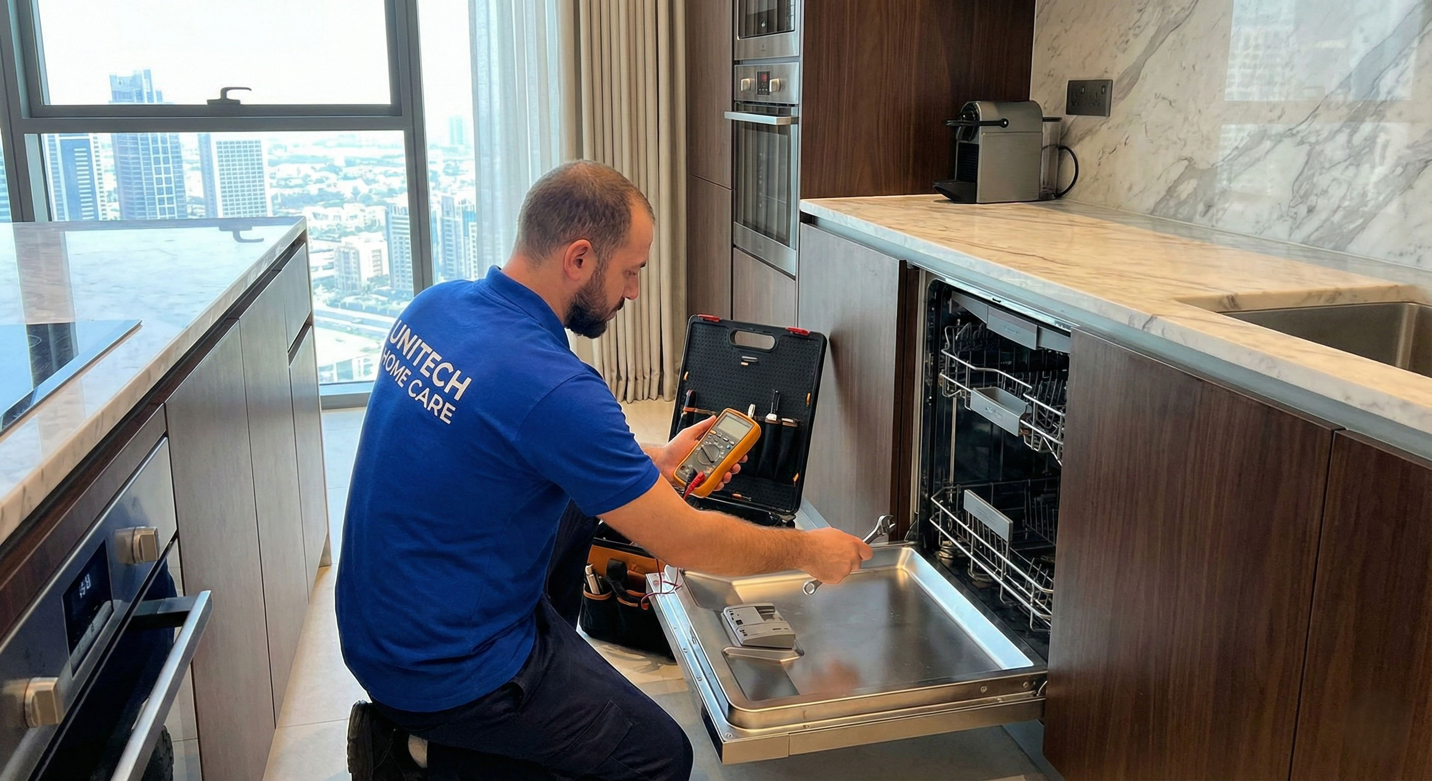 Our experts specialize in built-in dishwasher repair in Dubai, fixing common issues like leaks, drainage problems, and poor cleaning performance. Get fast, reliable service at your doorstep to restore your appliance’s efficiency.